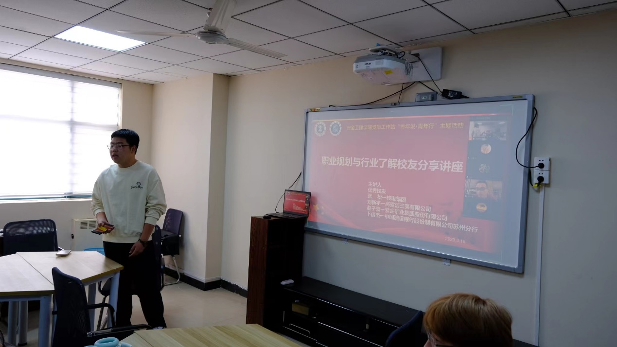 会议伊始,杨腾锐同学对各位学长进行了简单介绍,刘世通老师邀请优秀毕业生们进行分享。2010级消防专业毕业生张松首先从自己在核电站的工作经历出发,强调安全在核电行业中很受重视,还详细介绍了生产厂房的消防管理和施工场所的活动管理,对于同学提出的疑问,给出了细致的解答。赵子豪则分享了自己在紫金矿业安全督查组中的工作经历,从“企业管理能力、安全技术能力、语言能力”这三方面讲述了如何提升安全管理素质。他认为,大学生越早接触职业规划和行业了解越有优势。接着,刘新宇分享了自己对于好工作的定义,他强调选择工作时,要考虑自身情况并结合自身因素进行选择。他鼓励同学们多参加实习,亲身了解行业情况。最后,卜俊杰建议同学们要重视外语学习,理性处理考证问题,重视安全职业,脚踏实地。交流会结束后,四位学长都留下了联系方式,以便答疑解惑,和同学们探讨交流。