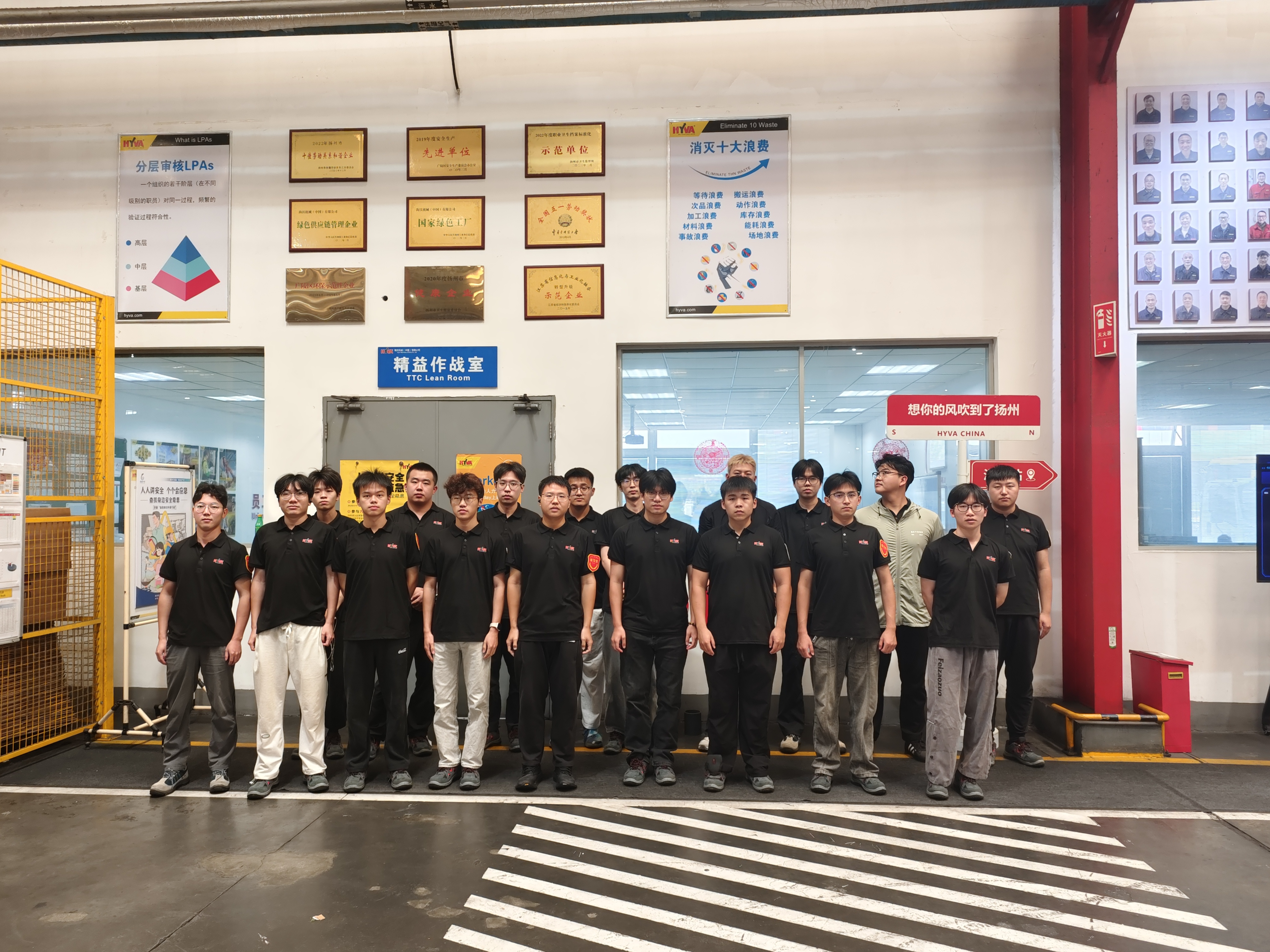 实习伊始,详实的岗前培训为大家系统介绍了行业现状、工厂安全布局及核心管理制度。随后,实习团成员两人一组,分别进驻油缸车间与TTA车间的关键生产岗位。在技术人员的指导下,同学们细致观察生产、检验流程,动手开展现场风险源辨识,并结合所学知识积极提出安全改进建议。海沃机械独特的安全文化,特别是由EHS(环境、健康与安全)部门主导推行的“TTC精益作战”管理体系,给师生留下了深刻印象。该体系创新性地融合了企业自有管理流程,将安全、环保、健康、质量与效率目标系统整合,为工厂的高效安全运行提供了示范性样本。