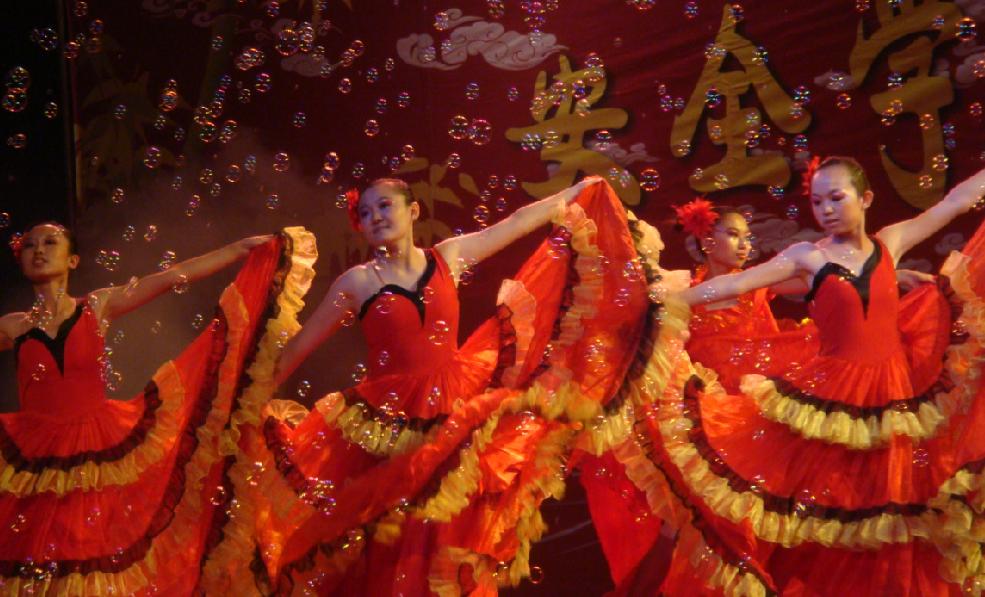 晚会在气势恢宏、情绪激昂的乐队表演中拉开序幕,精彩纷呈的节目轮番上演。异域风情的舞蹈《西班牙女郎》、机械舞《Screaming》和民族舞《维族舞&哈萨克拍手舞》等节目,展现了全院师生共祝祖国60周年的的喜悦之情;由包子漫画