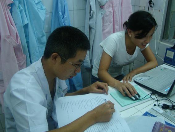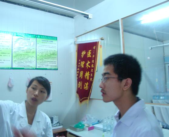 “重返地震灾区,共建和谐家园”暑期社会实践团一行冒着烈日来到江油市中坝社区卫生服务中心,针对在医疗方面的灾区重建的情况做了采访,并进行了相关的问卷调查活动。