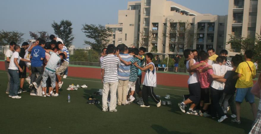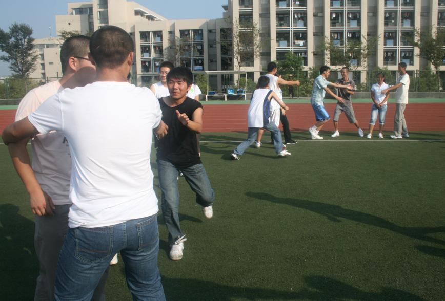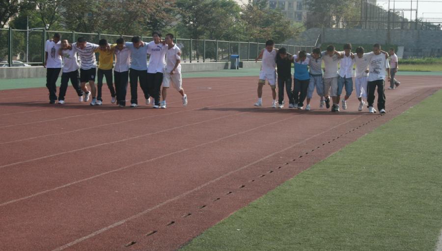 09级辅导员刘筱婕老师组织09级新生在第一田径场进行新生团队素质拓展训练,全体新生参加了本次活动。新生团队素质拓展训练旨在通过游戏加强新生之间的认识和了解,增强班级、团队凝聚力和协作能力,加强学生之间的相互信任,培养学生对团体的奉献精神。