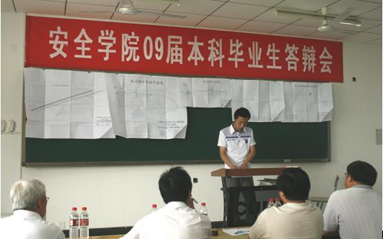 2009届本科生毕业论文答辩工作在矿业楼A313、教4-C30、教4-C306、教4-C309、教4-C3010、教4-C311全面展开。学院成立了以王德明院长为组长,李增华副院长、李金明副院长(副书记)为副组长,由专业负责人周福宝、季经纬及相关教学管理人员为成员的答辩委员会。