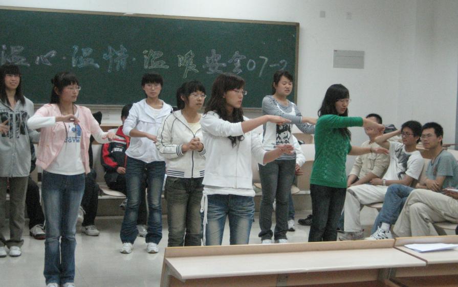 最后,李老师带领大家做“讲述与倾听”的游戏,三分钟不间断讲述和三分钟默默聆听对于提高大家的人际交往能力起到了积极的引导作用。同时,李老师总结安全07-2班这一年来取得的成绩并对大家的表现做出肯定的评价,同时也提出对安全07-2班更高的期望与要求。班会在大家美丽的笑容和热烈的掌声中圆满结束。