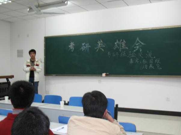 科技学术部开展了模拟小课堂活动,此次活动的主题是“考研英雄会――考研经验交流会”。张国维和汤燕飞两位同学应邀参加了本次经验交流会。