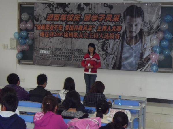 学生会联合举办的“迎百年校庆,展学子风采” 、“挑战无处不在,秀出真我风采”的主持人选拔赛在教一B401、402和403举行,“谢霆锋2009徐州歌友会”的主持人将在他们之中选出。