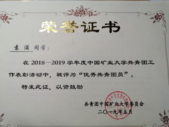 学业发展中心,并获得了2018-2019学年校级优秀共青团员、校级优秀学生干部、建校110周年文艺晚会先进个人、“优秀班长”、“优秀干事”荣誉。