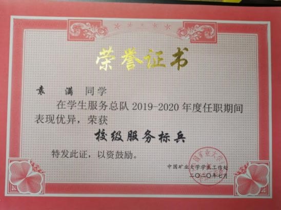 优秀学生干部称号。获徐州市救助管理站优秀志愿者、2019年校级社会实践先进个人、校级优秀社会实践团队负责人;2020 年徐州市社会实践先进个人、徐州市优秀社会实践团队负责人、包子漫画