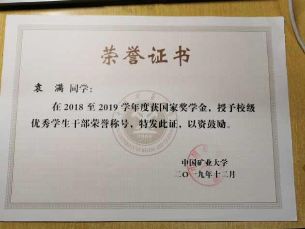 2019-2020学年加权成绩:90.81分(3/137),素质综合排名:2/137。以“良好”等次通过计算机二级考试。荣获国家奖学金。