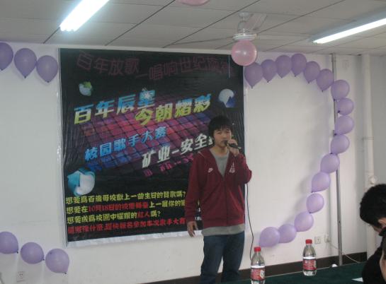 4月11日上午8:00,“百年辰星,今朝熠彩”校园歌手大赛――矿业安全赛区海选赛在广大学生的期盼中隆重开赛,比赛在梅三一楼活动室举行。整个赛场秩序井然,气氛十分热烈。选手自选清唱曲目,由三位评委举牌决定选手是否能进入复赛,海选赛历时约三个小时,在报名参赛的100名选手中,最终有30名选手进入了复赛。