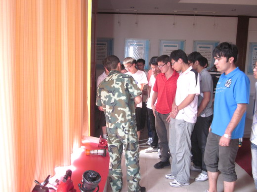 参观展示厅之后,大家又走进了战士们的宿舍,整整齐齐,干干净净。与上次相比有所不同的是,大家这次参观了消防队的报警系统。这里的报警系统和消防大队的报警系统联系在一起,当大队系统检测到报警电话是来自泉山分区的时候,将会把电话连线自动连接到这里。这里的系统立即打印出报警人的地址和着火类型,根据不同的火灾类型出动不同的灭火车,一般的火灾出动水罐车,油火出动泡沫灭火车等。