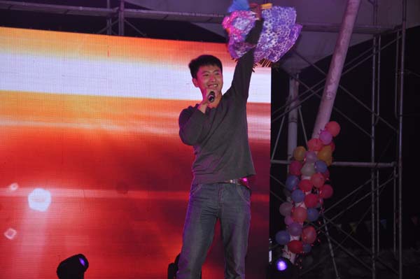 晚7点整,以“畅想青春”为主题的晚会正式开始。本次晚会内容充实,现场节目与视频穿插进行。晚会以一段开场舞开始,表演者热辣的舞姿使在场观众爆发出热烈的掌声。紧接着,由校园十佳歌手曹文博、张婕勇等带来的矿大好声音也使在场观众尖叫声接连不断。晚会中还有一个精心安排的互动环节,由主持人任意抽取在场20位观众玩游戏《找零钱》,这个环节受到了广大新生的欢迎,被抽中的新生热情高涨,12级兼职辅导员刘静老师也参与其中,现场气氛达到高潮。紧随而至的搞笑小品《非诚勿扰》也让会场的气氛不断升温,李广威、王晓霞等表演者通过各种犀利的说辞和精湛的演技使得整个小品幽默诙谐、妙趣横生。之后,由包子漫画