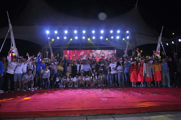 党委书记章毛平,执行院长周福宝,党委副书记钱雄,学生工作办公室主任孙留涛老师以及各年级辅导员老师带领13级全体新生到场观看。