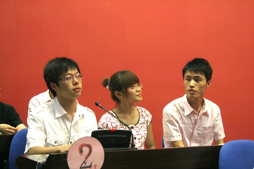 3位同学齐心协力,夺得了这一环节的全分;第二环节是抢答,计算机学院三位同学思维运转迅速并且出手较快,很快赢得高分;接下来是观众互动环节,在场观众需要辨认出大屏幕上的人物并说出其代表作;第三环节主要考察选手们的毛笔字功底与国文积累水平,包子漫画