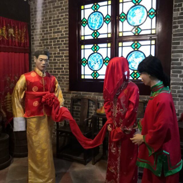 雕刻精致的木床、陈列有序的大堂、取光的天井展示着广东典型的传统家居风格,西关婚嫁习俗一直贯穿着中原的古代传统婚俗,但也独具地方特色。此外,馆内还展示了西关当地的一些小吃如艇仔粥、双皮奶等及其历史来源。