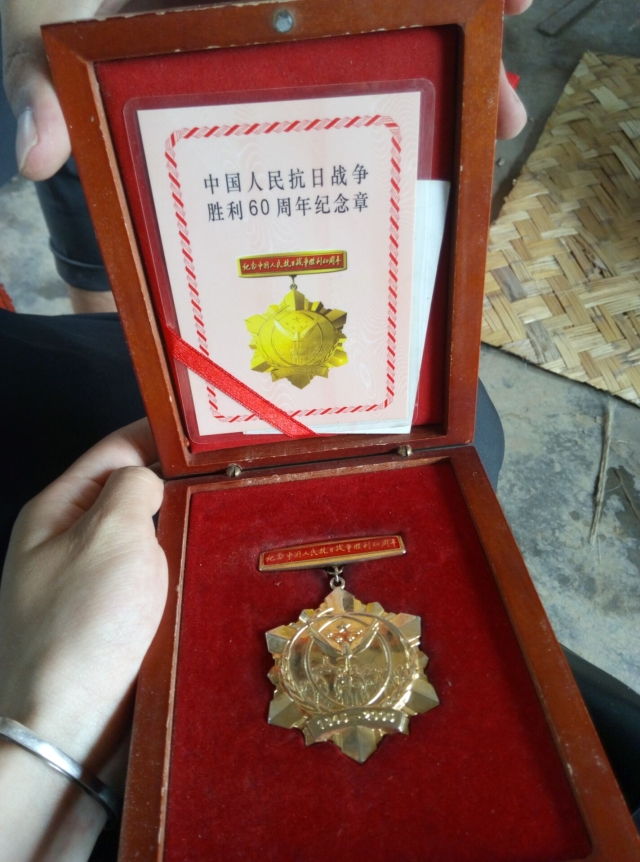上午九时许,志愿者们到达朱汉章老前辈家中。朱老前辈于1938年入伍,现已有九十六岁高龄,曾荣获三等功。谈到自己的入伍经历,朱老前辈说道:“我没有家,没有父母,九岁我的父亲去世了,十四岁我的母亲也去世了,没人养活我,我要饭要到那个济南去,在门口遇到一个姓蔡的,叫蔡宏章,简单的问了我几句话之后就给我留下来了,我也就跟着他走了。”听得志愿者们很是心酸。朱老前辈在部队里从小兵到班长,再到排长,最后到连长,由于身体原因,后来被部队安排到后方。老前辈至今对淮海战役印象最深刻的一场是保卫那一场,他说:“当时在保卫那些个地方,就南边一枪北边一枪,一直撑到徐州,郑州,皖南下来打到沛城西,整个就跟徐州连起来。”回忆起部队生活,老前辈,老前辈在队伍里干过通讯员、警卫员等,他说;“那时候部队都是老粗布,黄粗布衣裳,发草鞋,穿草鞋子,没布鞋就发草鞋子穿,烟嘛就是旱烟,小烟袋,一发四两,一小烟袋。”采访结束,朱老前辈向志愿者们展示自己的勋章并与志愿者亲切合影。