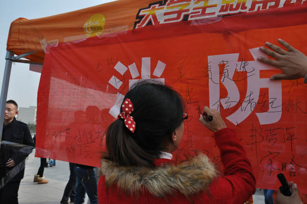 上午11点,青协的同学们早早地来到二食堂广场,他们支起敞篷搭设宣传点,放好宣传展板,摆放好消防器材,为宣传做好充分的准备。身披红色绶带的他们奔走在人群之中,向同学们分发印有消防知识的传单,并为其做了耐心细致的讲解。每当有同学好奇的停驻在展板前,观察灭火器时,青协的队员们总会热情地迎上去,手把手地教其如何正确使用并为其演示,有的同学还在写有“消防安全,你我共建”的横幅上签下了自己的名字。尽管已过12点,但队员们服务同学的兴致依旧不减,在秋天微微的凉意中,同学们的额头上却有细密的汗珠。直到下午一点,在青协全体成员的忙碌下,活动圆满结束。