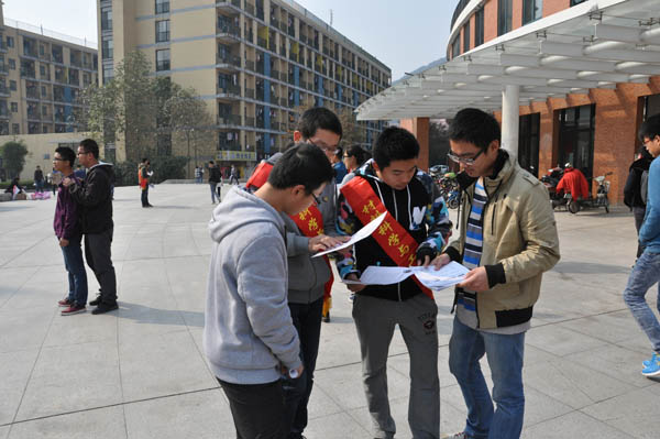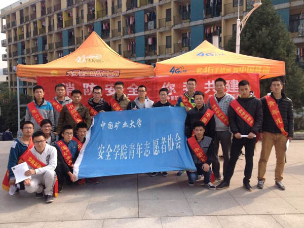 青协全体成员在青协执行主席鲁守正的带领下来到二食堂广场,为过往的同学们普及消防安全的知识。