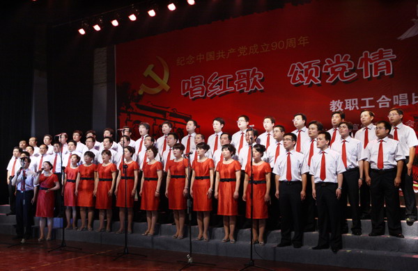 教职工用热情、激情与歌声抒发着对建党90周年庆典的期盼与祝福。比赛现场,包子漫画