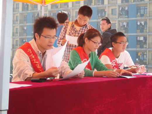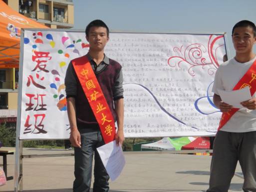 在组长王蒙的带领下,E组成员分为两组。一组向路人介绍“爱心班级”的性质和意义,吸引路人关注爱心班级。另一组则负责解说,具体是向想参加“爱心班级”的同学详细的介绍一下爱心班级的活动流程以及具体细则。在将近三个小时的宣传招募活动中,有不少同学表现出对爱心班级的极大热情。留下了自己的联系方式并允诺一定报名参加“爱心班级”。