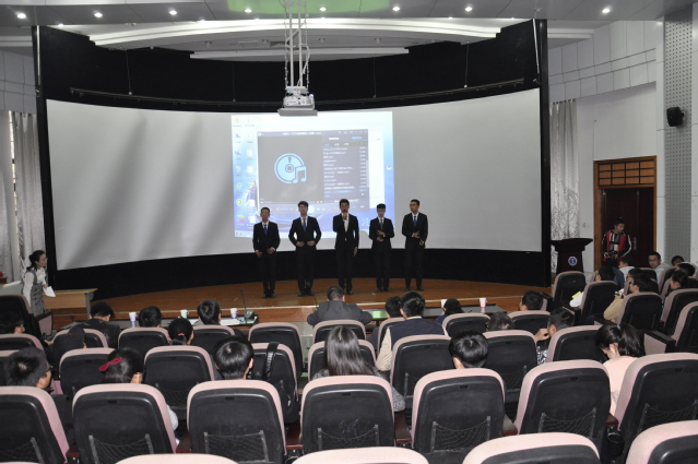 的由亮、韩智童、赵树言、艾克热木江·艾合麦提、刘凤凯五位同学用激情的演讲和朗诵将整场活动的气氛推上了新的高潮。在演讲《爱国强军,振兴中华》中,他们围绕“国防”展开,先后用了习近平总书记的“对于军队而言,中国梦就是强军梦”,毛主席的“没有巩固的国防,就没有人民的福利,也没有国家的富强”,以及《孙子兵法》的“兵者,国之大事,死生之地,存亡之道,不可不查也”等概念,解释并强调了国防的重要性,优美的声音,激昂的语调,富有感染力的神态动作和声情并茂的朗诵一次次打动了在场的评委和观众,引得场下不时爆发出阵阵掌声。