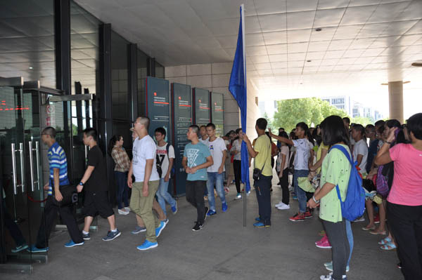 13级新生在三食堂广场整队集合,并前往位于矿大南湖校区的内的煤炭科技博物馆进行参观。