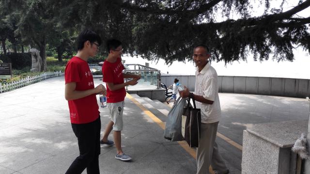 “寻找蓝天”社会实践团给云龙湖景区工作人员送去了矿泉水,在慰问景区环境工作者的同时,让爱护环境的观念深入人心。