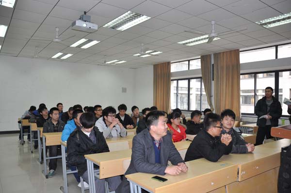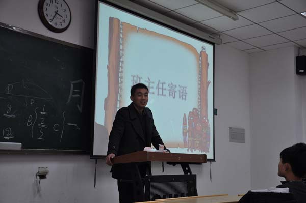 会议伊始,彭扬简单介绍了本次班会的目的,树立良好学风,冲刺英语四六级考试,加紧备战期末考试。首先进行的是四六级考试技巧交流,两位英语成绩较好的同学分别从四六级考试的写作、听力、阅读、翻译等方面给予同学们有关时间分配及答题技巧的建议。稍后,由班级中成绩较好的同学分享了期末复习心得,期末考试越来越近,班里两位比较有特点的同学分别就自身复习经历给大家讲解高分攻略与考前突击技巧。会议的最后,班主任做了简单的总结,他说,作为班主任还是很乐意参加大家的集体活动,和同学们进行交流,本次班会此次班会召开得及时、有效,给同学们带来切实的帮助,希望同学们加强学风建设,积极备考,争取在期末考试中取得一个优异的成绩。会议在热烈的掌声中也画上了圆满的句号。