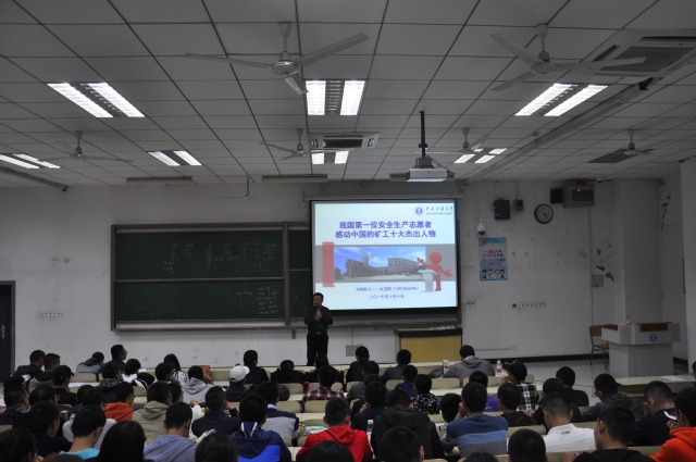 于博学楼五C207召开2017级新生安全知识讲座,本次讲座由中国第一位安全生产志愿者、感动中国的矿工十大杰出人物、中国好人——宋卫国老师担任主讲,17级辅导员刘世通和17级全体新生参加了此次讲座。