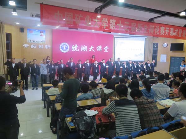 将在第七个出场对阵力建学院。最后,伴随着各参赛队伍做出的慷慨激昂的宣誓,本届辩论赛开幕式暨表演赛至此顺利落下了帷幕。