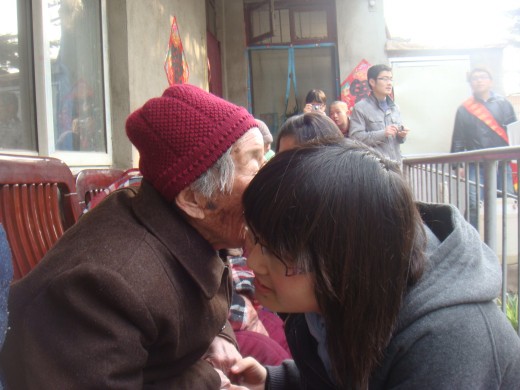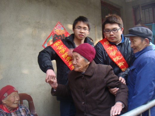 志愿者队伍在康汇托老中心院长的热烈欢迎后,分成若干个小组。有的志愿者们开始为老人们准备午饭,还有的志愿者把还在屋子里公公婆婆慢慢地搀扶到院子里,在温暖的阳光下同学们和老人们聊起了天。同学们都认真听公公、婆婆讲述改革开放前后的个人经历,令同学们了解到今天的幸福来之不易,同学们还了解到了一些老人们不同寻常的经历以及一些他们闻所未闻的历史事件,同学们也将自己在外面读书的情况以及各自家乡的建设和老人们进行了交流,院子里充满了欢声笑语。这拉近了双方之间的距离,并使得这次活动更加富有意义。通过相互交流老人们的内心得以安慰,而学生们的到来让他们感到自己不是孤独的,社会大家庭的温暖团团包围着他们。