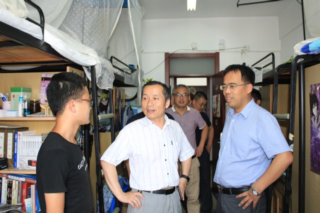 党委书记章毛平、院长周福宝、副院长朱晓东、党委副书记钱雄、工程中心行政副主任周劲锋、14级辅导员孙婷走访毕业生宿舍,看望即将离校的毕业班学生,并送上深切的问候。
