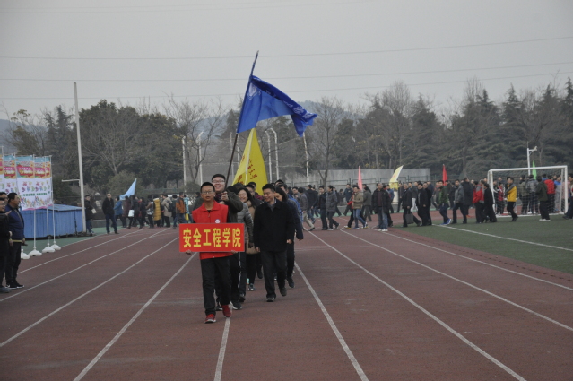 的口号“矿大安全,感谢有你,快乐行走,健康第一”。