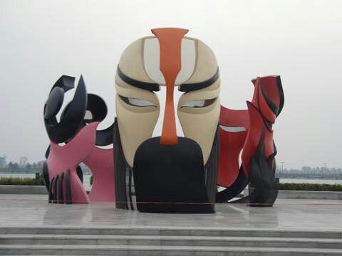 三国文化广场桃园三结义脸谱造型