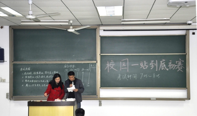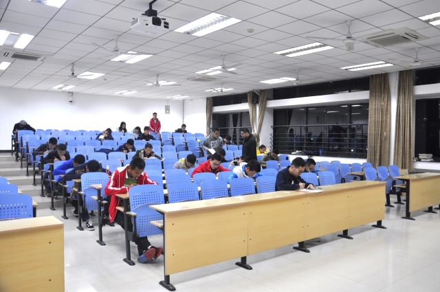 晚上七点整,各参赛选手有序进场。监考负责人从开考前、考试期间和考试结束三个方面向考生讲解注意事项,让参赛者充分感受比赛的公平性与组织的有序性。随后,工作人员将试卷分发,各参赛者迅速投入答题中。最后,同学们都陆陆续续交卷离开考场。过程中秩序井然,文明参赛。试卷上交后,由工作人员统一批改。