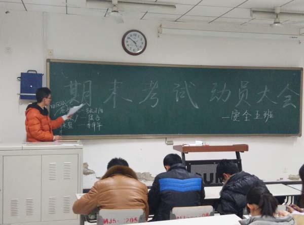 14级5班在教五B205举办了期末考试动员大会暨考前诚信教育。