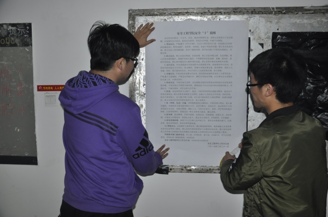 新闻宣传中心的部员张贴了安全“十”提醒