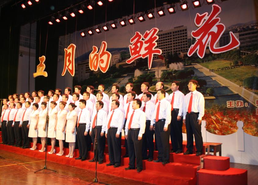 校歌》、《游击队之歌》这两首激情飞扬、精彩无限的歌曲,唱出了安全教师的拳拳爱校之情,表达了对祖国的忠诚和热爱,体现出了较高的艺术水平。演唱至高潮时,歌声感染了在场的观众。整个科学馆歌声激昂,一种作为国家、学校的主人翁的自豪感荡漾在每个人心间。