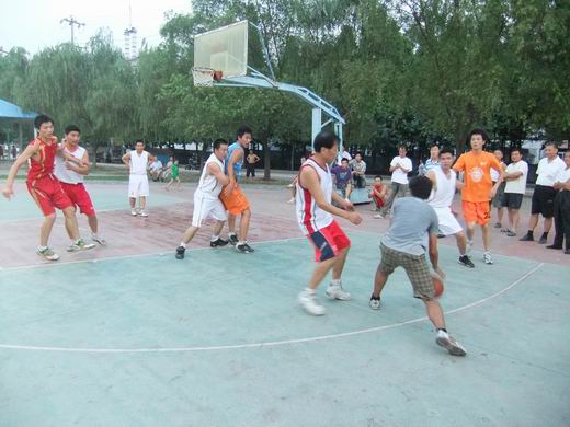 低碳环保实践团邀请祁南矿篮球队与中国矿大学生于13、14日晚在祁南矿小区广场上举行了两场篮球友谊赛。这次比赛进程紧张精彩,气氛热烈和谐。场上队员各个奋勇争先,场外拉拉队人人呐喊助威。本着“友谊第一,比赛第二”的原则,队员们在赛场上奋力拼搏,进攻、抢断、占位、防守……比赛最终以祁南矿篮球队两次险胜中国矿大篮球队的结局落下帷幕。通过两次比赛,不仅促进了双方之间的交流,增进了友谊,强健了体魄,更彰显了祁南矿安全监察处队伍、煤矿工人和矿大学子勇于战斗、敢于拼搏的精神。在广场另一边上,音乐或热烈或柔美地渲染着,一大群人热辣辣地跳得神采飞扬,跳操不仅容易坚持,减少居民户内开空调看电视时间,节电减排也很“低碳”。前后左右转一圈,抬手、抬脚、甩脚、扭腰、跳跃,各个动作跟着做一遍,就已经汗流浃背了。跳操不仅可以锻炼身体,放松精神,排毒养颜,还可以团结邻里、增强集体荣誉感。