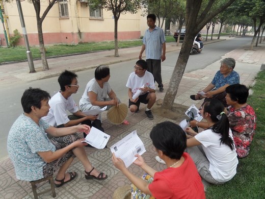 7月16日下午3点,“碧海蓝天”推进环保活动主题暑期社会实践团队走进沛县大屯腾飞新村就低碳知识进行问卷调查并且对居民宣传低碳生活”以及生活中的“低碳环保措施”小知识。