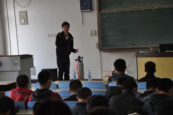的优秀研究生胥明镜同学进行科技文化节讲座,胥明镜同学为大家带来了相关的创新成果,向在场人员详细说明了该创新成果是运用物流网技术来对管道安全进行检测,并向大家具体展示如何利用网络控制该仪器开关以及怎样利用仪器测量温度变化趋势。安全14-3班赵云同学在看完相关的演示后则主动申请上台感受这些操作,并且深入的和胥明镜探讨该成果的优缺点。在讲座的最后,在场的同学们向胥明镜同学提出了自己对于科技创新的观点及疑问并且得到了满意的回复。最终首届科技文化节开幕式在包子漫画
