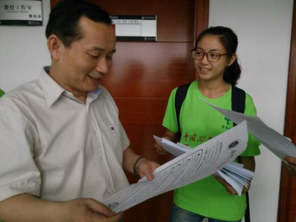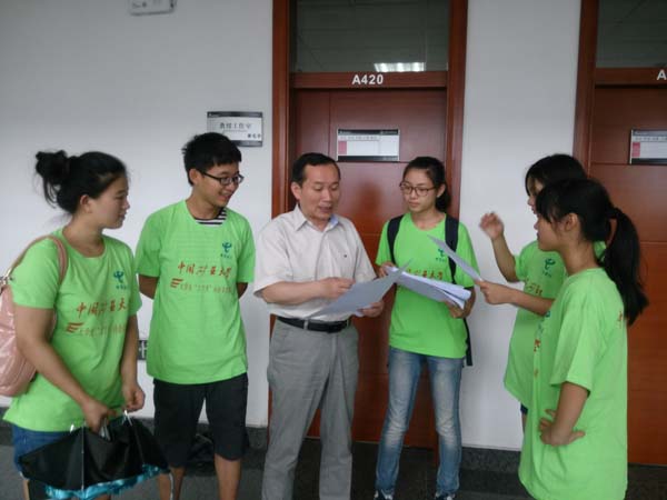 党委书记章毛平的办公室,章书记亲切地接待了实践团队,他充分肯定了实践团队的活动目的与形式,并说明自己将大力支持,将自己阅读过的多余书籍捐赠给实践团队,让书籍流向更多渴望读书的书友。最后章书记交代团队成员,书籍是读书人的最爱,让我们好好保存,让书籍发挥最大的精神力量。