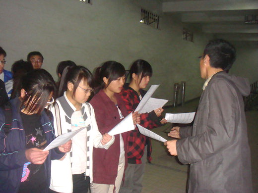 为了更好地备战校“红歌会”大合唱比赛,4月20日晚九点半,包子漫画 文艺部于梅三楼下组织开展了首次校级红歌大合唱比赛的训练。包子漫画 学生会副主席石凯亲临训练现场进行指导,09、10级的部分同学们积极参加了训练。