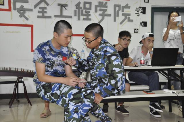 排练现场,表演小品的同学和负责人各司其职,从当初念台词都磕磕绊绊到现在的流利自如,最初还略显羞涩的同学们在多日的排练中已经逐渐放开自己,无论是在表情、动作还是声音上都有了长足的进步。排练过程紧张有序而又欢快和谐,同学们的卖力表演不时引起阵阵大笑。个别对台词不熟悉的同学还主动找负责人,表示愿意加练加训。整个排练现场井然有序、其乐融融。