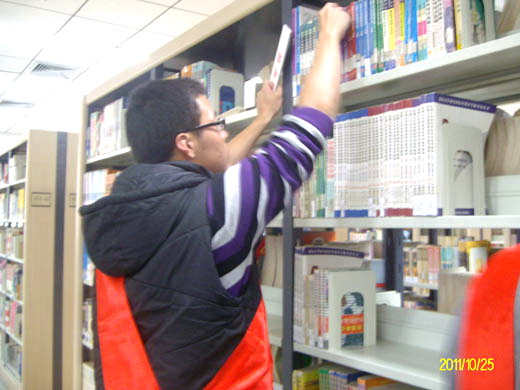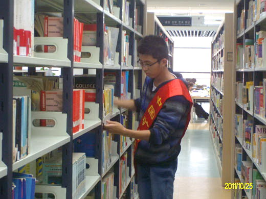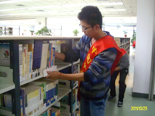 下午四点,青年志愿者值班活动在图书馆正式展开。青年志愿者们佩戴绶带,开始了认真的整理工作。在活动过程中,他们严格地遵守图书馆的规定,在不打扰读者阅读的前提下,静静完成工作目标。志愿者们按照书的编码,将被随便乱放的书放回原位,同时将杂乱的书摆放整齐,为读者的查找和阅读提供了方便。除了整理图书,他们还积极的进行了书架的清洁工作,拭去书架上的尘土,为图书馆增添了洁净和美丽。