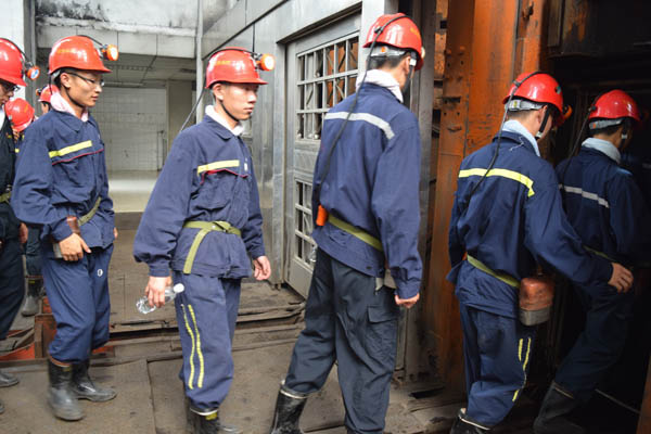 在为期两天的井下活动中,实践团先后参观井底车场、运输大巷、避难硐室、采掘工作面场所,全面展开调研活动。矿区坚持“预防为主,防治结合,综合治理”的原则,在不同场所、不同性质条件下,有针对性地采取不同措施,严格控制瓦斯灾害。相关负责人说,矿区通过保护层开采与预抽煤层瓦斯,从源头上消灭瓦斯危险,并建立了井下瓦斯抽采系统,在实际生产中排除瓦斯灾害发生的可能性。在参观避难硐室时,符海华指出,矿区高度重视井下的应急救援工作。硐室内配备充足的食物和洁净的饮用水,并能获取新鲜的氧气,在发生灾难时,硐室作为坚固的后盾,切实保障井下工作人员的生命安全。接下来,实践团陆续参观了采煤机、输送机等机械设备,再经过曲折蜿蜒的巷道、顺槽,参观了井下监测监控、压风自救、通信联络等系统,充分了解矿区应急救援情况。在剩余的时间里,实践团与井下职工展开广泛的交流,了解到井下工作的落实情况与具体技术困难。完成升井后,针对具体问题,实践团组织讨论,提出技术创新措施,并与矿区相关人员做了深入交流。