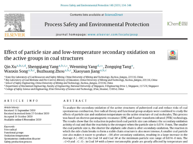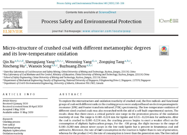 自开展研究工作以来,在导师的指导下,我主要是基于实验平台进行煤氧化特性实验研究。由于煤结构的复杂性,其化学氧化过程同样复杂且难以达成统一的理论体系,在查阅大量文献资料的基础上,每日开展实验探究不同煤种的氧化自燃特性。在五年多的研究生涯中,无数次推翻自己的实验思路,也常苦恼于不理想的实验结果,经过积极与导师、师兄探讨,重新设计实验、调整方法,也惊喜于实验研究中的一些新的发现,最终取得了一些阶段性科研成果。