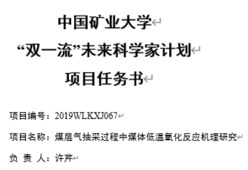 “双一流”未来科学家计划项目,作为主要成员积极参与完成钱营孜煤矿孤岛工作面瓦斯治理及防灭火技术项目、潘西煤矿通风系统优化改造项目。
