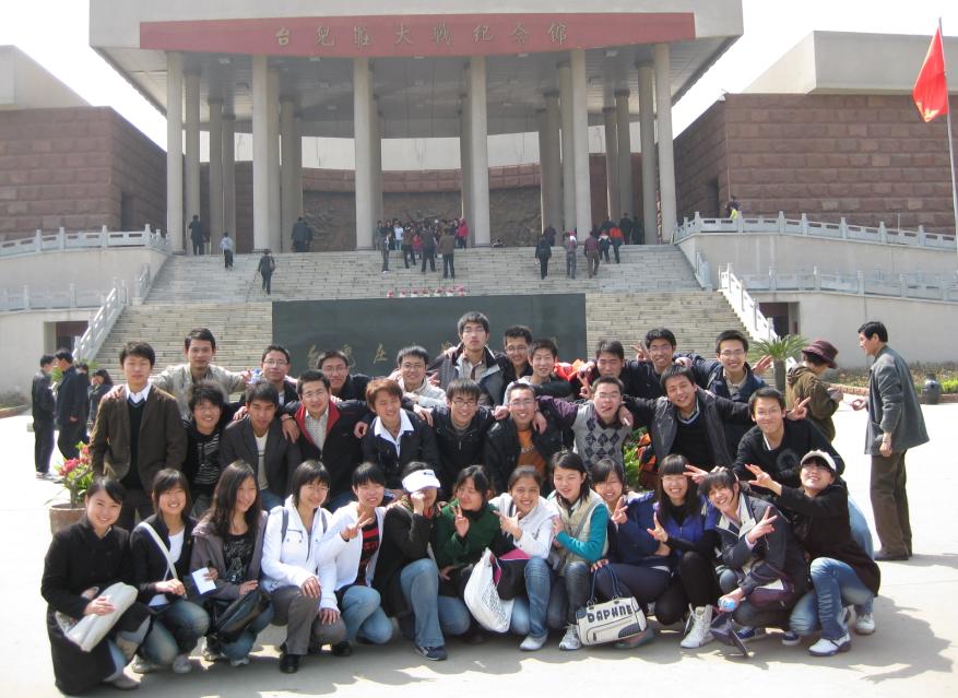 35名学生党员以“浓浓爱国情” 为主题,以实地参观革命纪念地方式,远赴台儿庄缅怀革命烈士,06级辅导员陈少松老师一同出行。