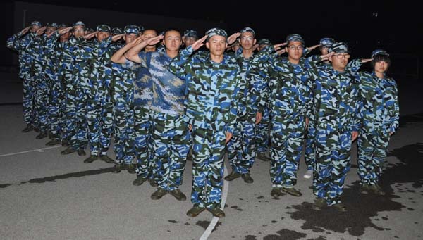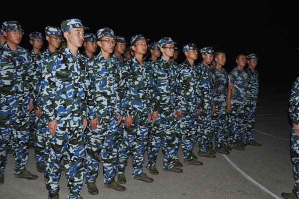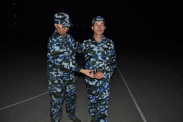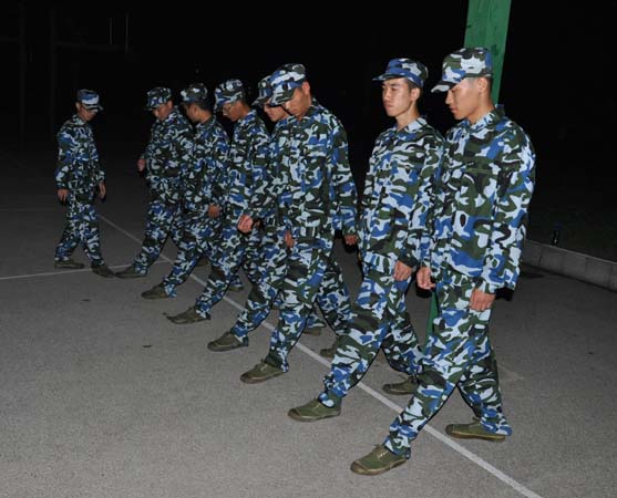 同时,在训练间歇,同学们还相互指出了在训练中暴露出的问题,并通过沟通协商以取得最完美的效果。伴随着漆黑的月色,一声声的口号响彻第三田径场,虽然白天的训练已经让大部分同学感到疲惫,但同学们的热情并无丝毫减少,反倒是越练越勇,越练越精。