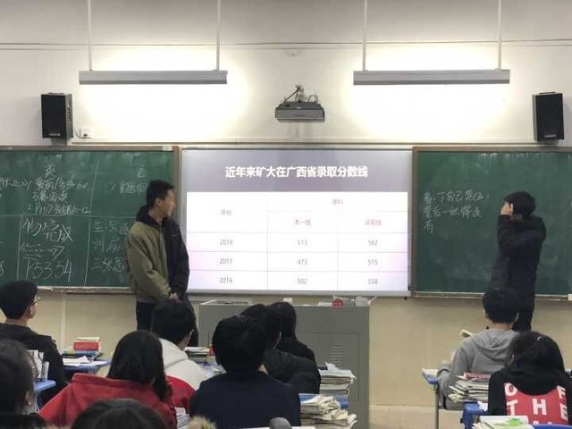 的覃凡朗同学和土木学院的苏俞康同学回到高中母校,为学校部分高三学生介绍了矿大,并分享了高三的复习经验。